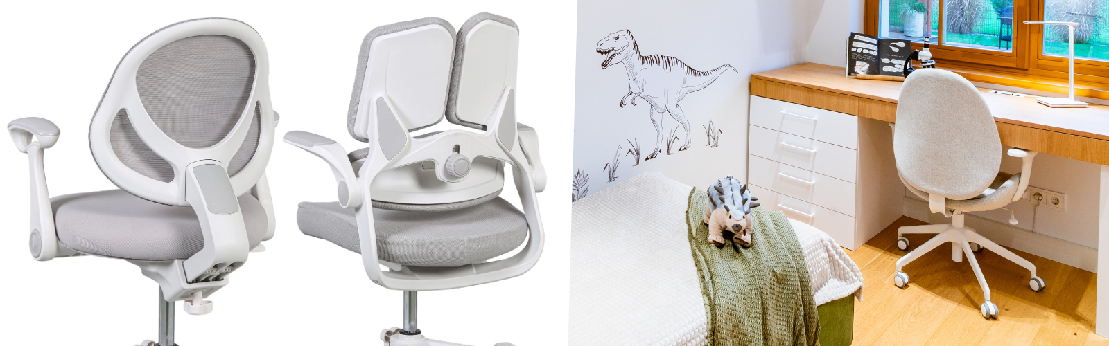 Ergonomická židle pomáhá dítěti udržet správnou polohu zad bez toho, aby muselo vědomě sedět rovně. To snižuje únavu při delším sezení a zabraňuje vzniku špatných návyků, jako je hrbení nebo sklánění se k pracovní desce.