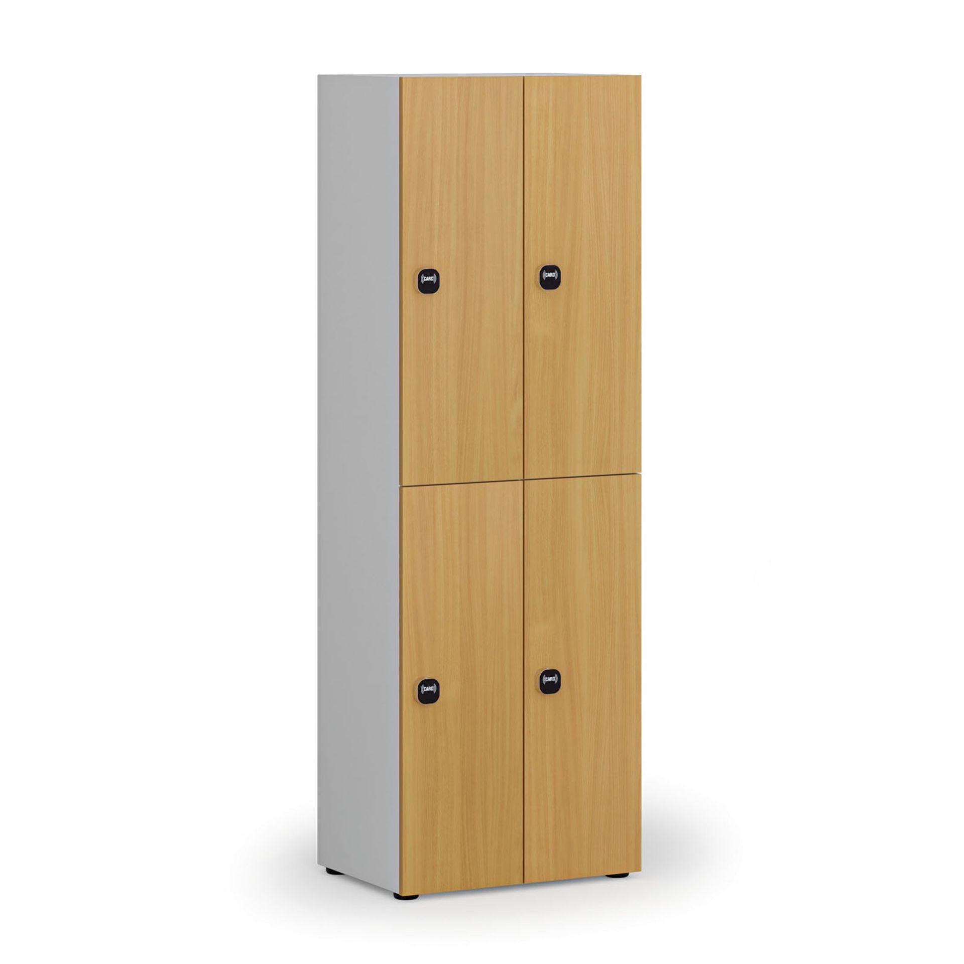 Dřevěná šatní boxová skříň pochází z naší vlastní produkce. Zaměřili jsme se především na funkčnost a bezpečnost. Rohy jsou olepeny ABS plastovou hranou. Skříni nechybí ventilace, která je prvotně zajištěna otvory v zadní stěně (mimo variant s 6 a 8 boxy).