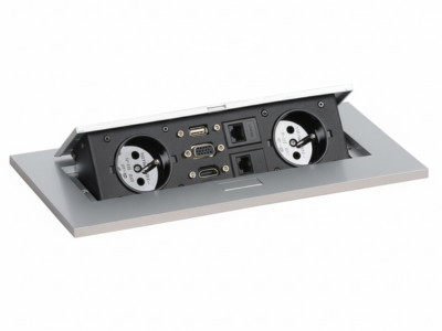 Jednací stůl PRIMO INVITATION, 240x120 cm, šedá + stolní zásuvka TYP VI, stříbrná