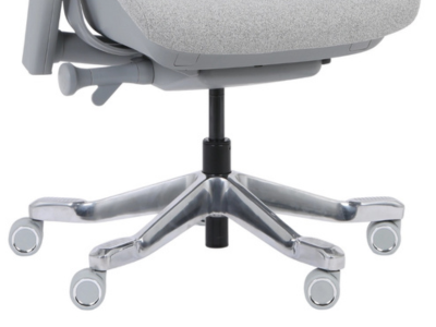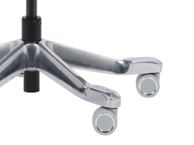 Jednou z nepřehlédnutelných součástí židle je bezesporu elegantní hliníkový kříž, který dodává židli celkovou stabilitu a odolnost. Slouží také jako základna pro uchycení pístu a pojezdových koleček. Diky použité základně, plynovému pístu a mechanice je tento model židle určen pro vysoké zatížení až 150 kg. Povrchová úprava leštěním dodává židli potřebnou eleganci. Píst umožňuje nastavení výšky sedáku v rozsahu 46 - 55 cm.