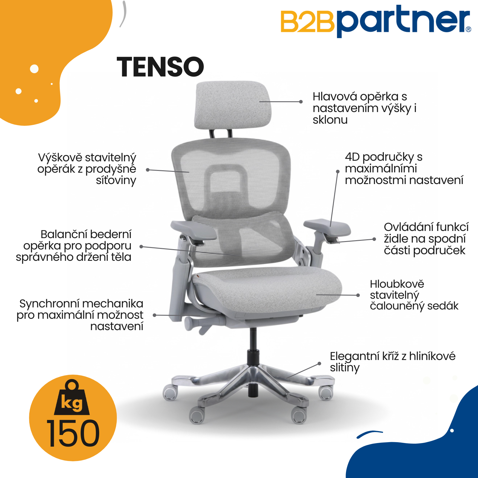 U tohoto modelu najdete velmi oblíbenou kombinaci látky a síťoviny. Tyto materiály v sobě kloubí neocenitelnou prodyšnost s potřebným pohodlím. Skvěle se tedy hodí pro celodenní sezení v práci.