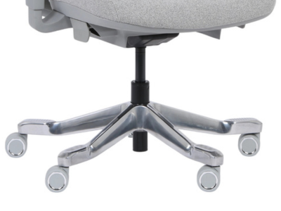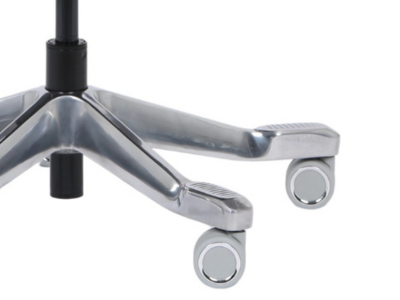 Jednou z nepřehlédnutelných součástí židle je bezesporu elegantní hliníkový kříž, který dodává židli celkovou stabilitu a odolnost. Slouží také jako základna pro uchycení pístu a pojezdových koleček. Diky použité základně, plynovému pístu a mechanice je tento model židle určen pro vysoké zatížení až 150 kg. Povrchová úprava leštěním dodává židli potřebnou eleganci. Píst umožňuje nastavení výšky sedáku v rozsahu 46 - 55 cm.