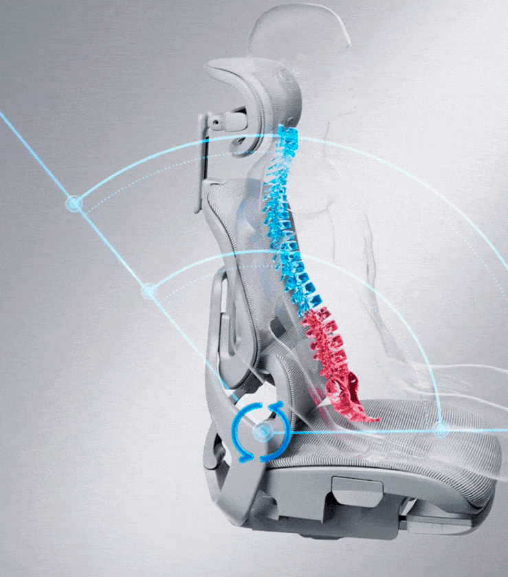 Balanční bederní opěrka, která se pohybuje směrem vpřed i vzad spolu se sedákem, Vám navíc poskytne aktivní a zdravou oporu bederní páteře a podpoří vaše správné držení těla při celodenní práci u počítače. Předchází navíc únavě, migrénám a taktéž snižuje riziko napětí svalů a tuhnutí zad.