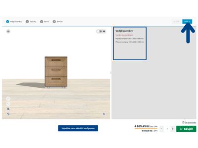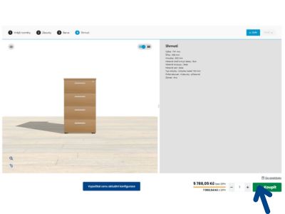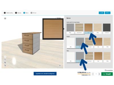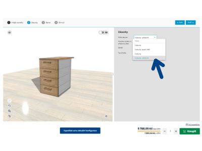 V dalším kroku zvolíte počet zásuvek a tím i typ kontejneru. K dispozici jsou varianty se 3 nebo 4 zásuvkami, včetně provedení se spodní hlubší zásuvkou. První tři varianty jsou určeny pro pojízdný kontejner na kolečkách.