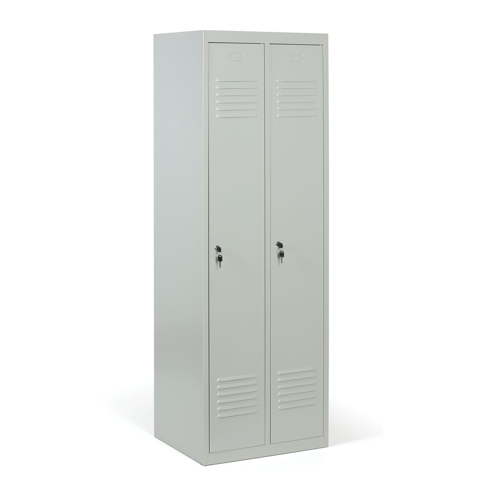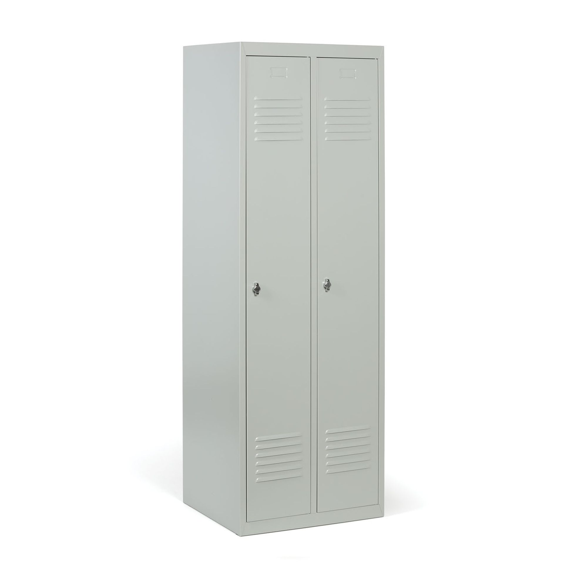 /Šatny a sociální zařízení/Šatní skříňky/Kovové šatní skříňky klasické/Kovová šatní skříňka S2, 2 oddíly, 1800 x 600 x 500 mm, demont, otočný zámek, šedé dveře