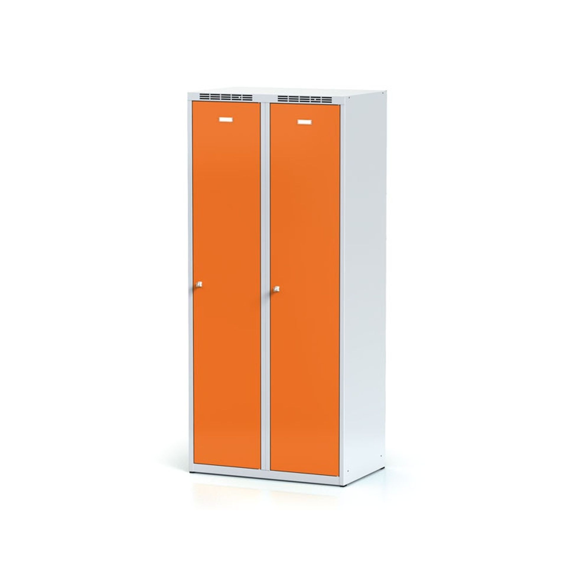 Skříňku tvoří 2 rozšířené části o šířce oddílu až 400 mm, které poskytují více místa než standardní varianty. Každý oddíl je navíc rozdělen pevnou mezistěnou, díky čemuž lze snadno oddělit civilní a pracovní oděv. Větší šířka zajišťuje pohodlné uložení i objemnějších věcí.
