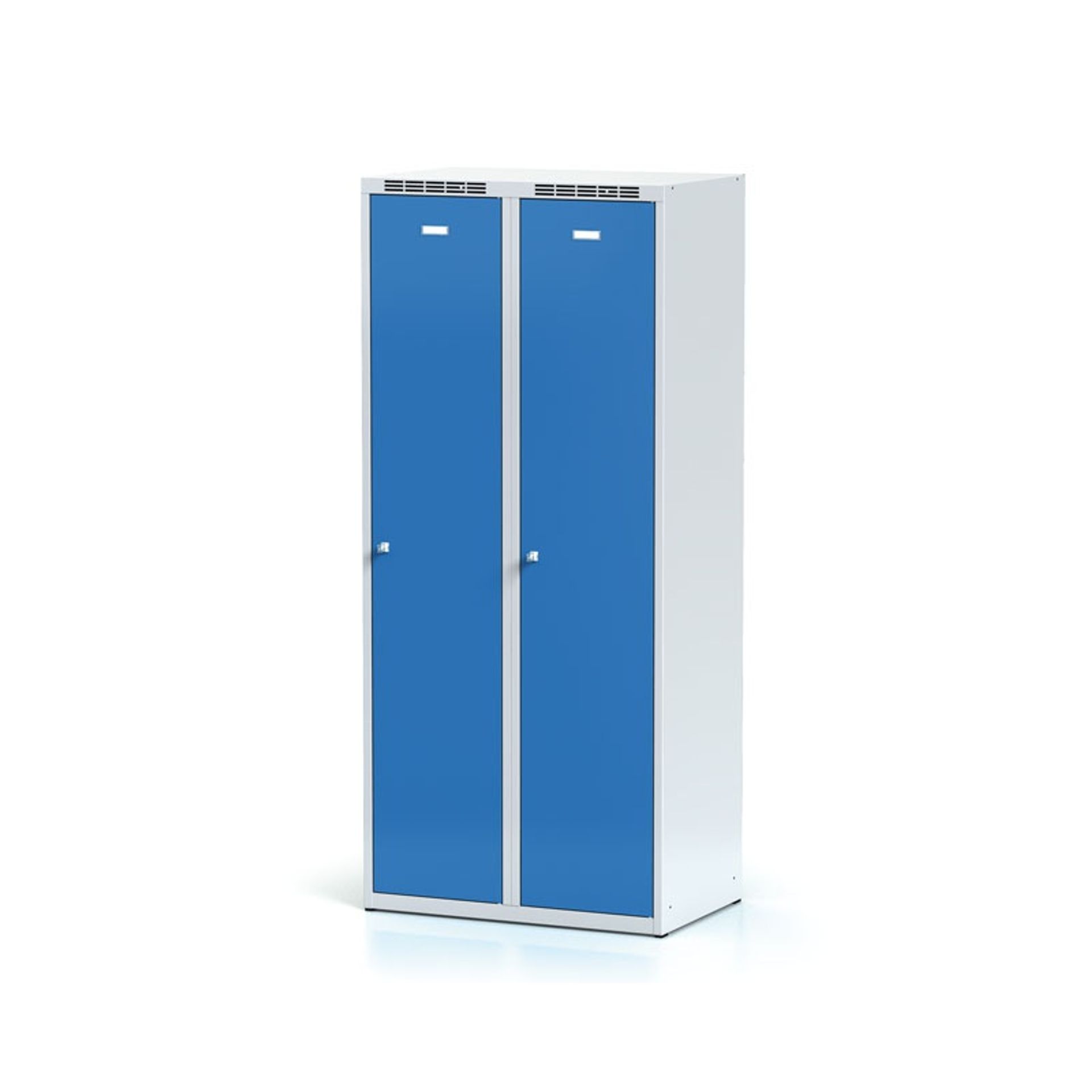 Skříňku tvoří 2 rozšířené části o šířce oddílu až 400 mm, které poskytují více místa než standardní varianty. Každý oddíl je navíc rozdělen pevnou mezistěnou, díky čemuž lze snadno oddělit civilní a pracovní oděv. Větší šířka zajišťuje pohodlné uložení i objemnějších věcí.
