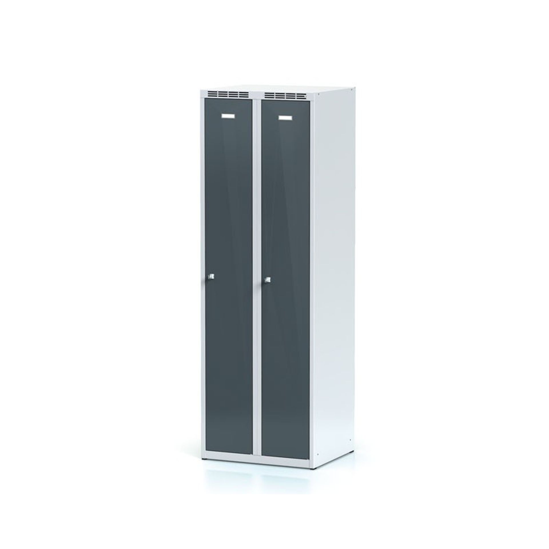 Skříňku tvoří 2 samostatné části o standardní šířce oddílu 300 mm. Tento klasický typ skříňky je nejběžnější volbou pro školy, firmy i sportovní zařízení. Nabízí dostatek prostoru pro osobní věci i oděvy.