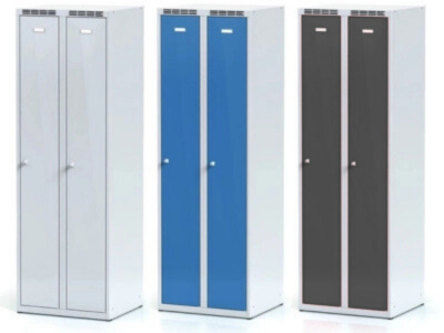 Skříňku tvoří 2 samostatné části o standardní šířce oddílu 300 mm. Tento klasický typ skříňky je nejběžnější volbou pro školy, firmy i sportovní zařízení. Nabízí dostatek prostoru pro osobní věci i oděvy.