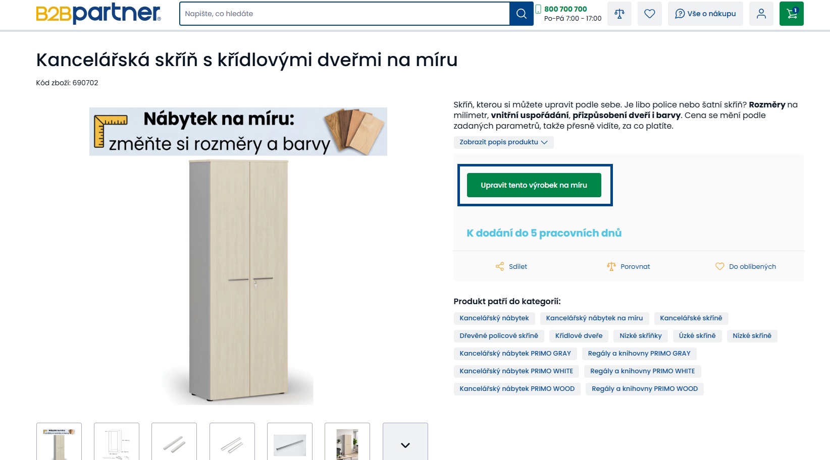 Po zvolení prvku z nabídky se zobrazí stránka detailu produktu. Na detailu vybraného produktu klikněte na tlačítko „Upravit tento výrobek na míru“, které vás přesune do spodní části stránky - přímo do části již spuštěného konfigurátoru.