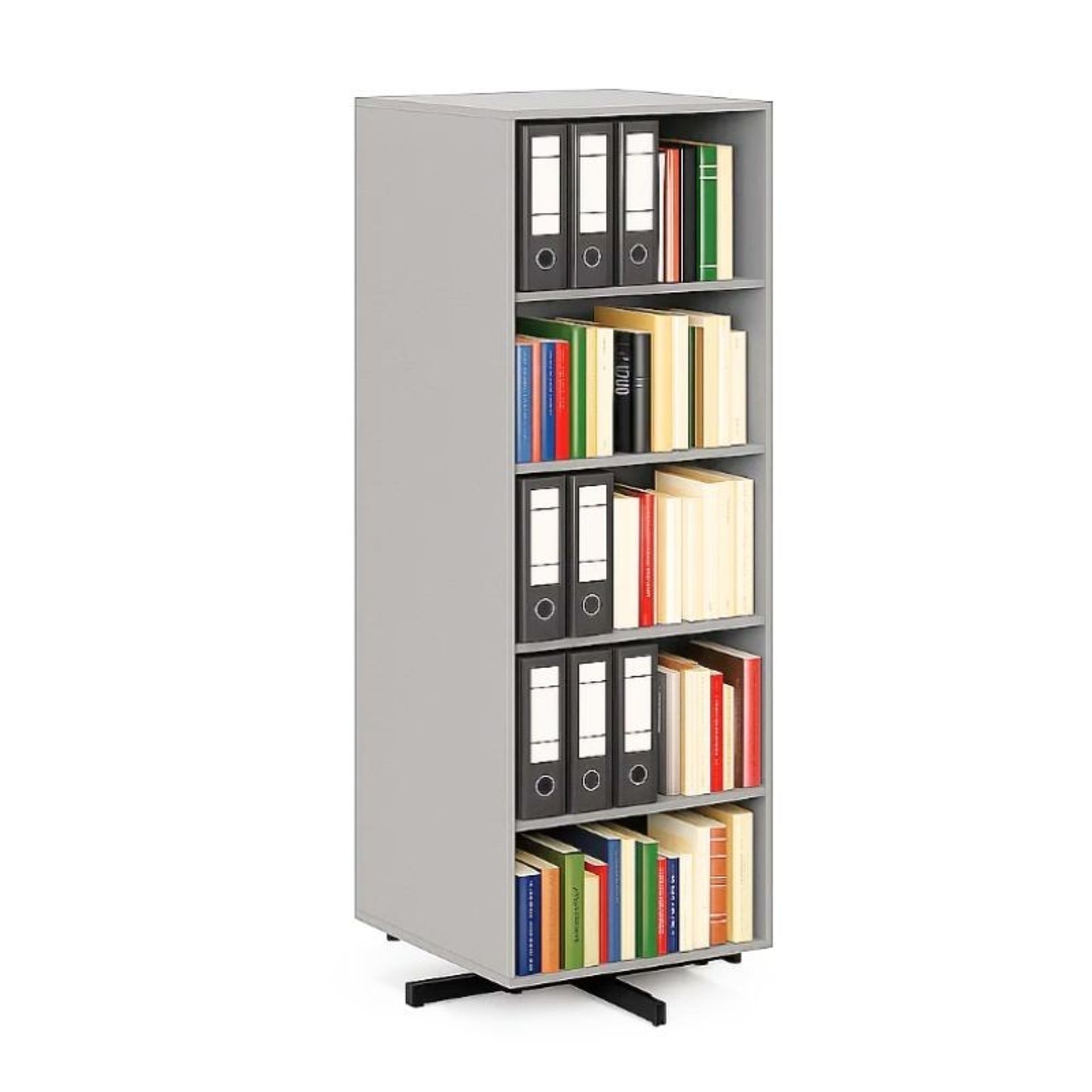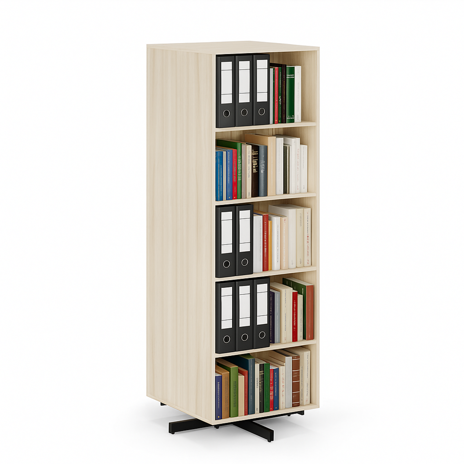 Tento otočný regál je praktickým řešením pro přehledné ukládání šanonů, knih nebo kancelářských potřeb. Díky otočné konstrukci se snadno dostanete ke všem uloženým věcem bez nutnosti regál obcházet – ideální volba pro kanceláře, archivy a kartotéky.