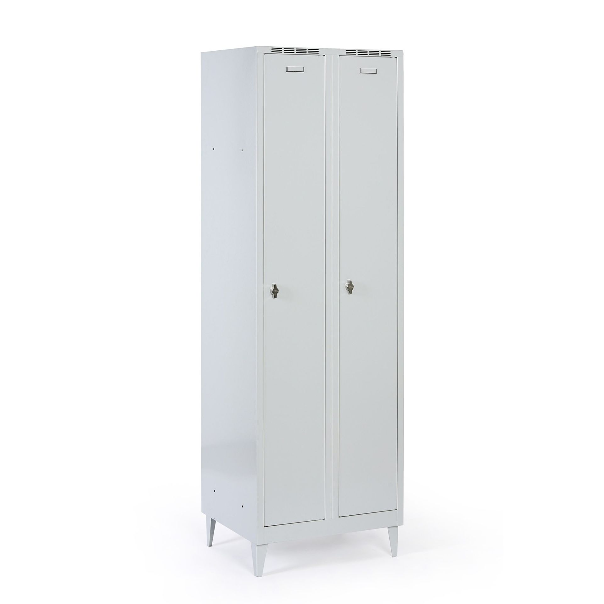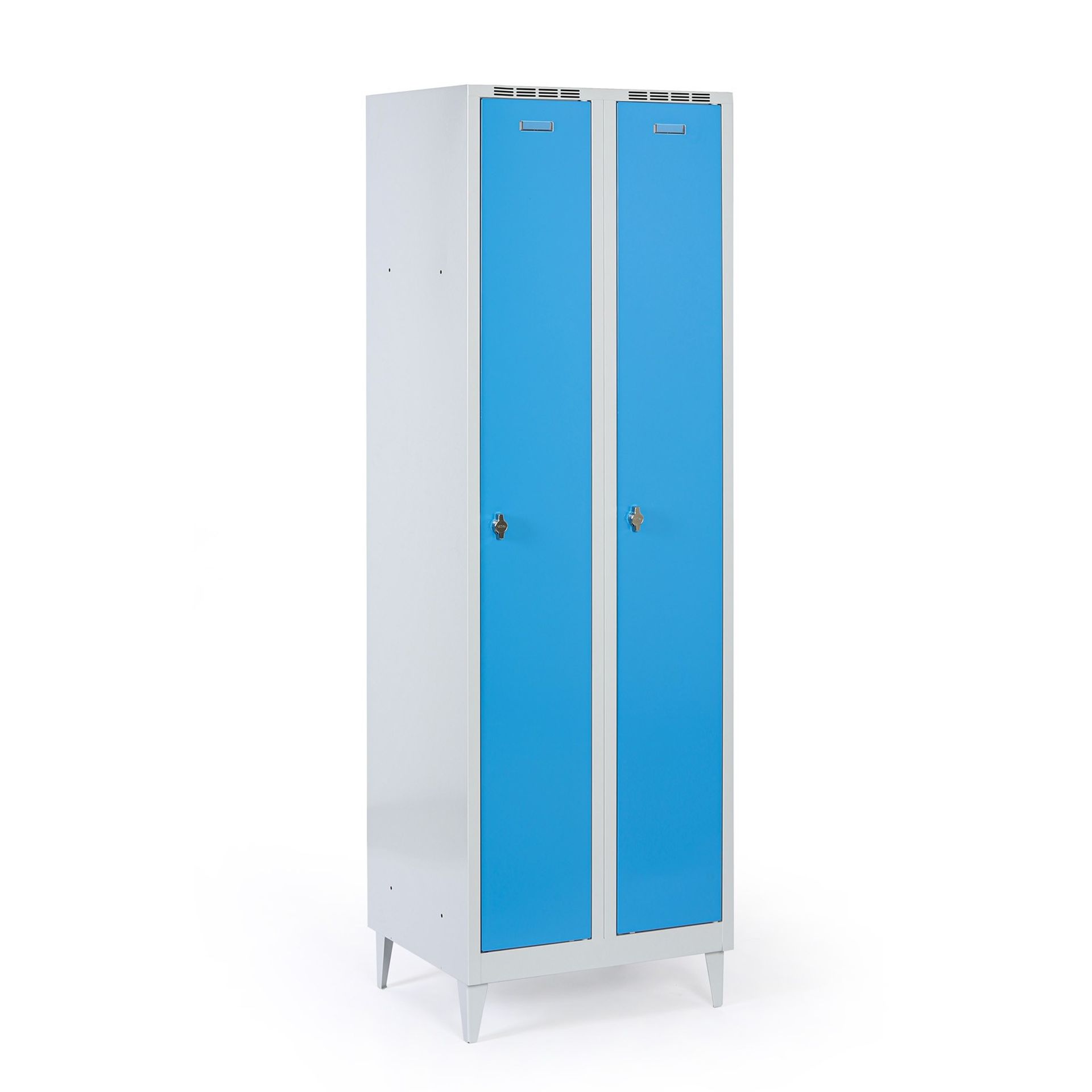 /Šatny a sociální zařízení/Šatní skříňky/Kovové šatní skříňky klasické/Plechová šatní skříňka S7 na nohách, 2 oddíly, 1920 x 600 x 500 mm, otočný zámek, tmavě šedé dveře