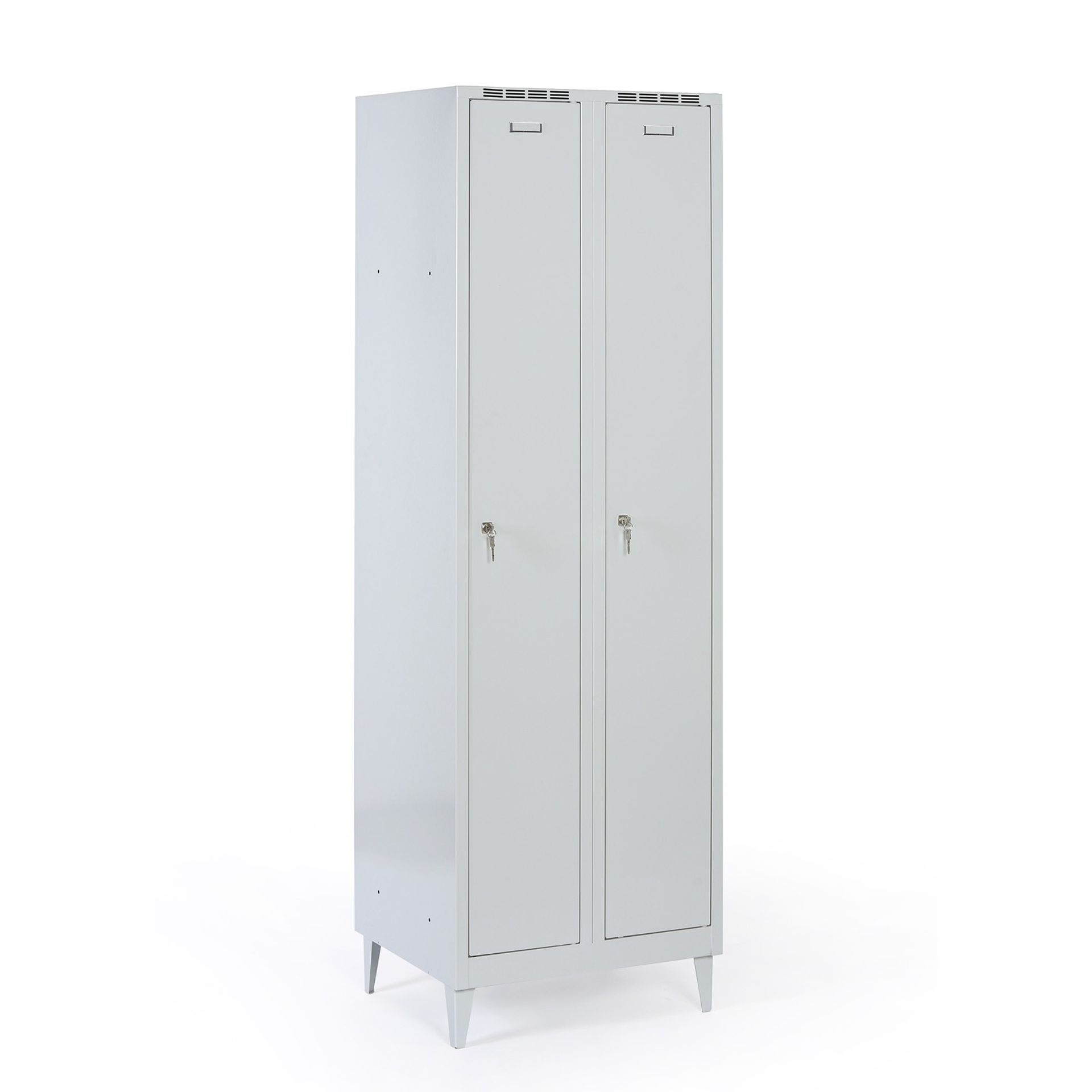 Skříňku tvoří 2 samostatné části o standardní šířce oddílu 300 mm. Tento klasický typ skříňky je nejběžnější volbou pro školy, firmy i sportovní zařízení. Nabízí dostatek prostoru pro osobní věci i oděvy.
