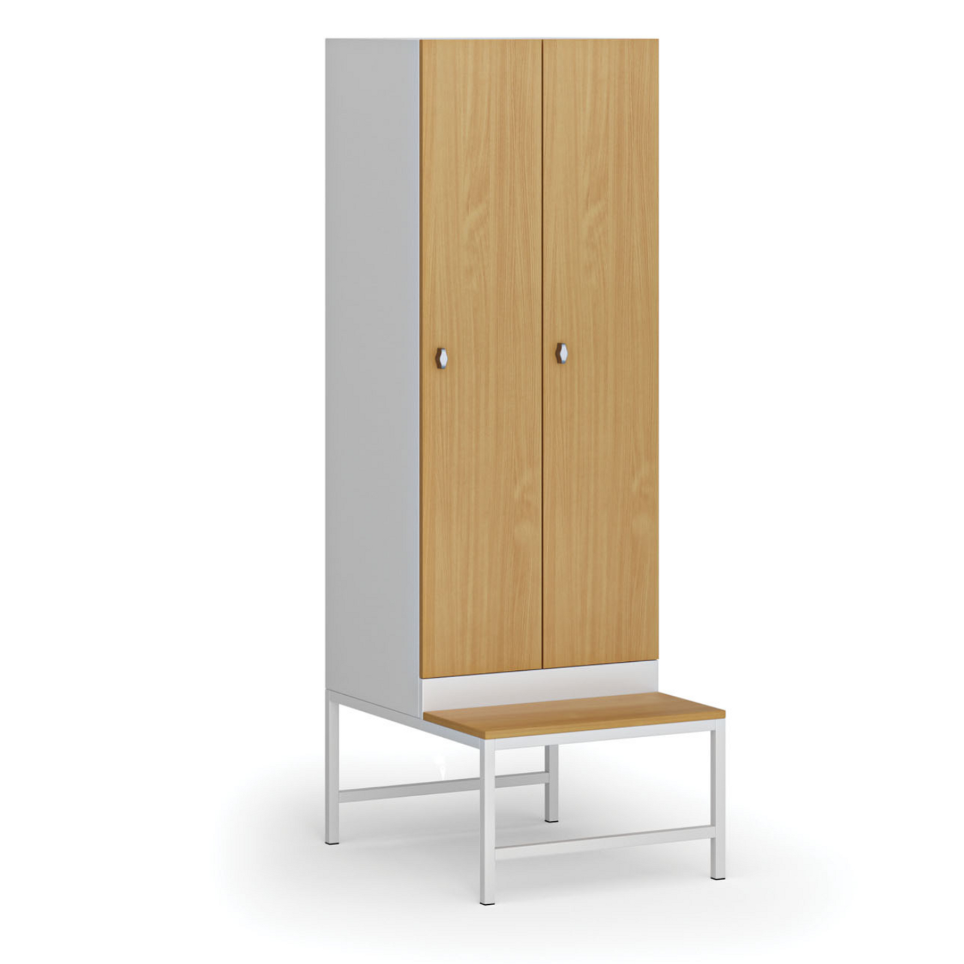 Šatní skříňka s lavičkou, 2 oddíly, 1875 x 600 x 500/800 mm, otočný zámek, laminované dveře, bříza
