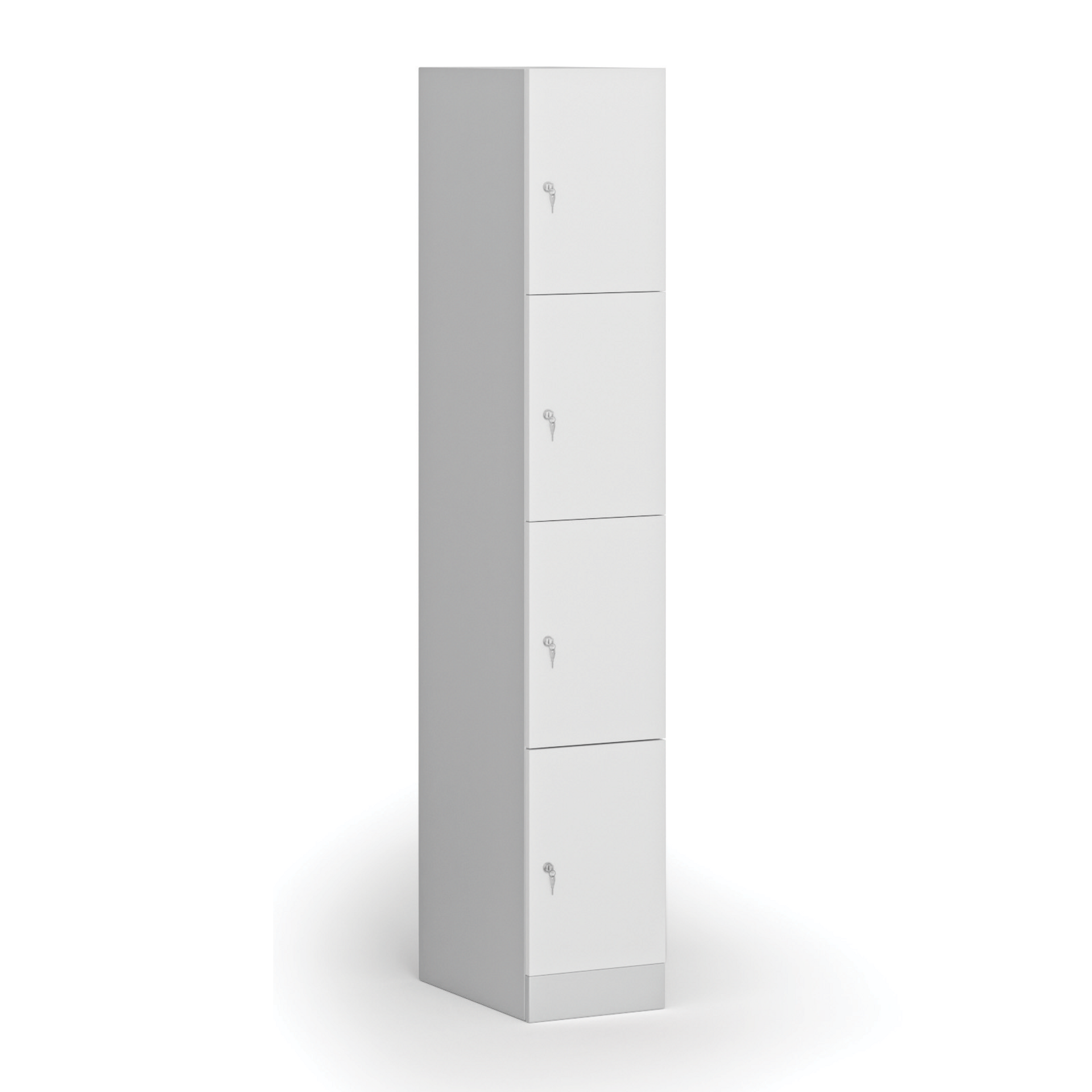 /Šatny a sociální zařízení/Šatní skříňky/Boxové šatní skříňky/Šatní skříňka s úložnými boxy, 4 boxy, 1850 x 300 x 500 mm, cylindrický zámek, laminované dveře, ořech