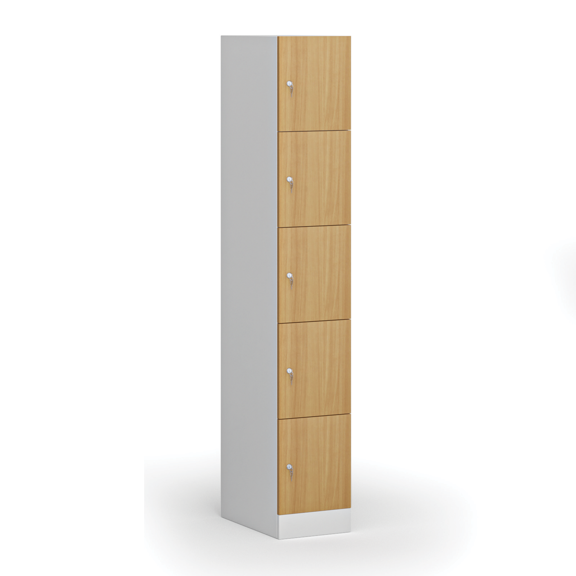 /Šatny a sociální zařízení/Šatní skříňky/Boxové šatní skříňky/Šatní skříňka s úložnými boxy, 5 boxů, 1850 x 300 x 500 mm, cylindrický zámek, laminované dveře, dub přírodní