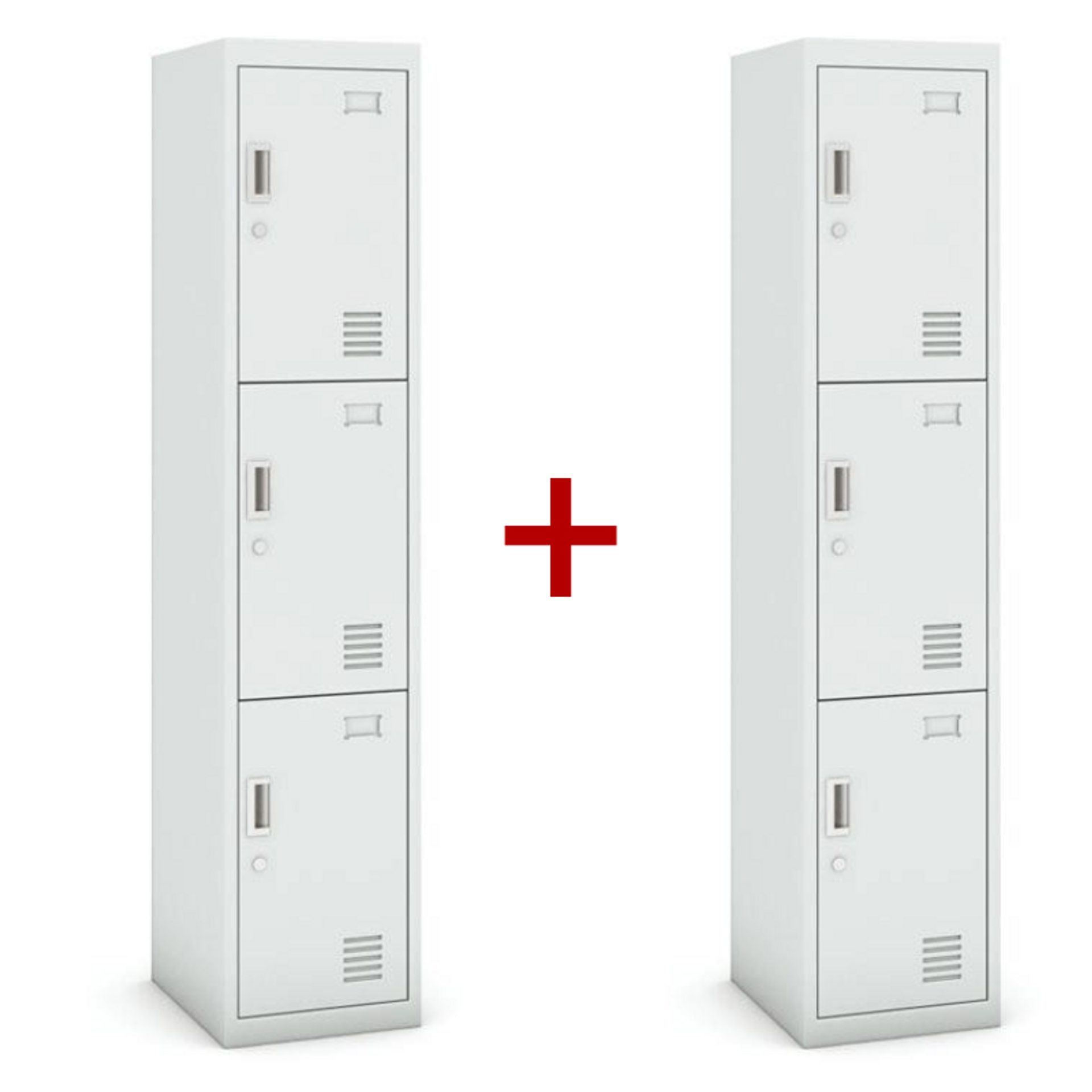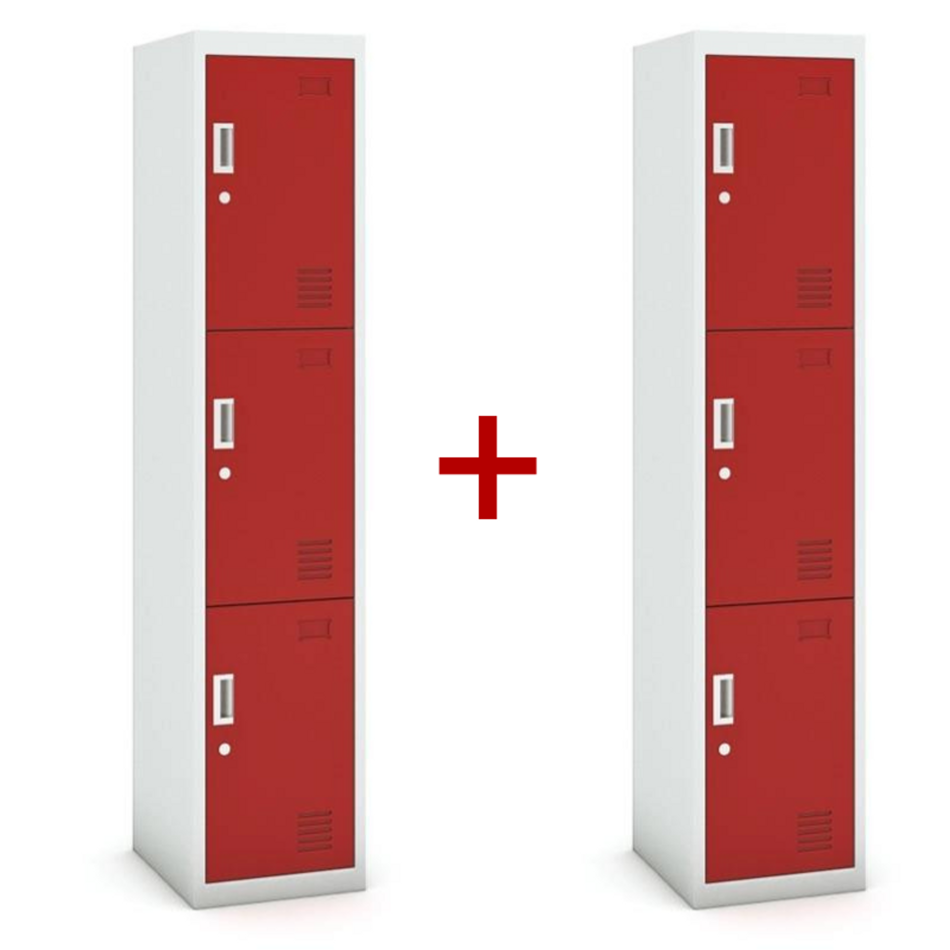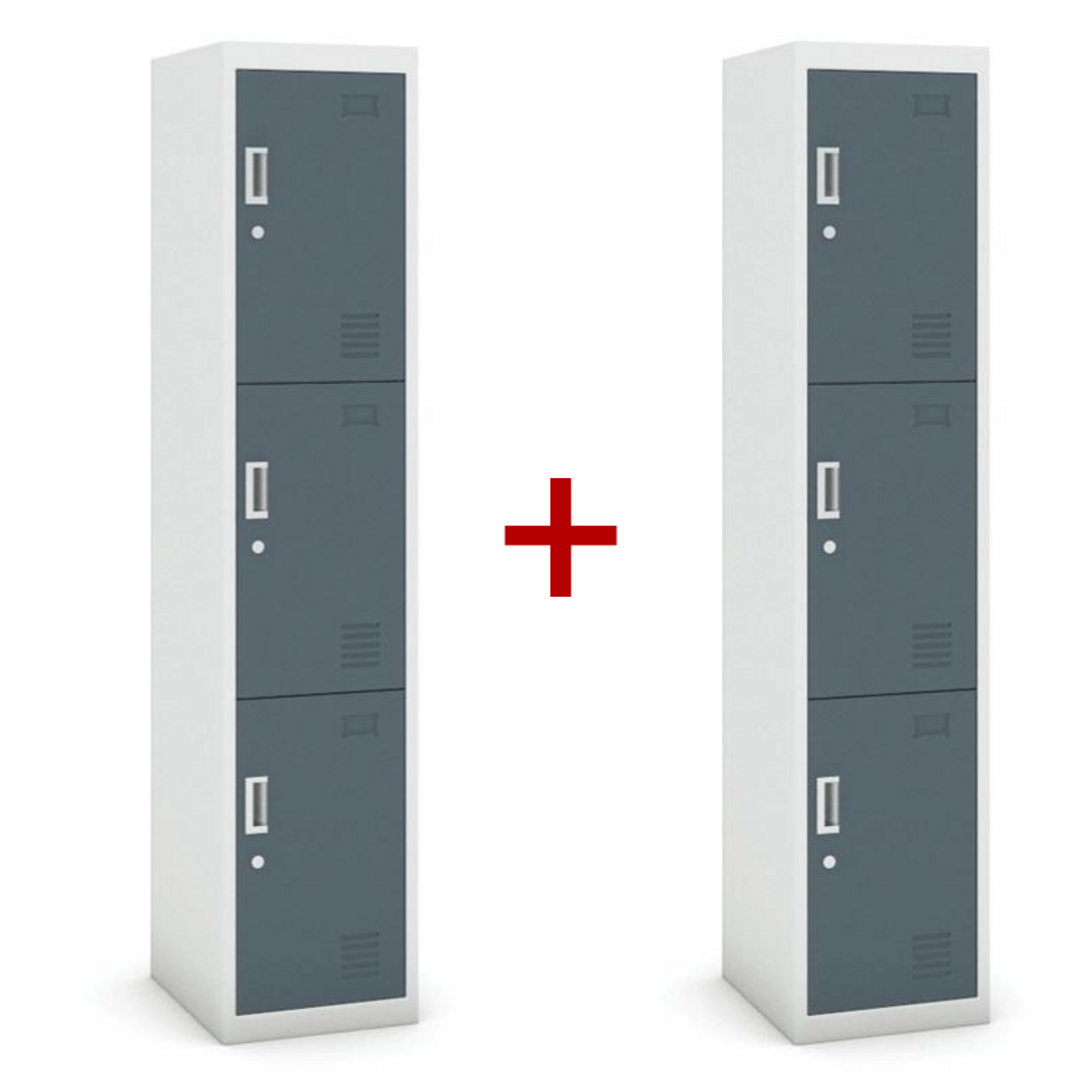 /Šatny a sociální zařízení/Šatní skříňky/Boxové šatní skříňky/Šatní skříňka S3 trojdveřová 1+1 ZDARMA, demont, cylindrický zámek, šedá/tmavěšedá