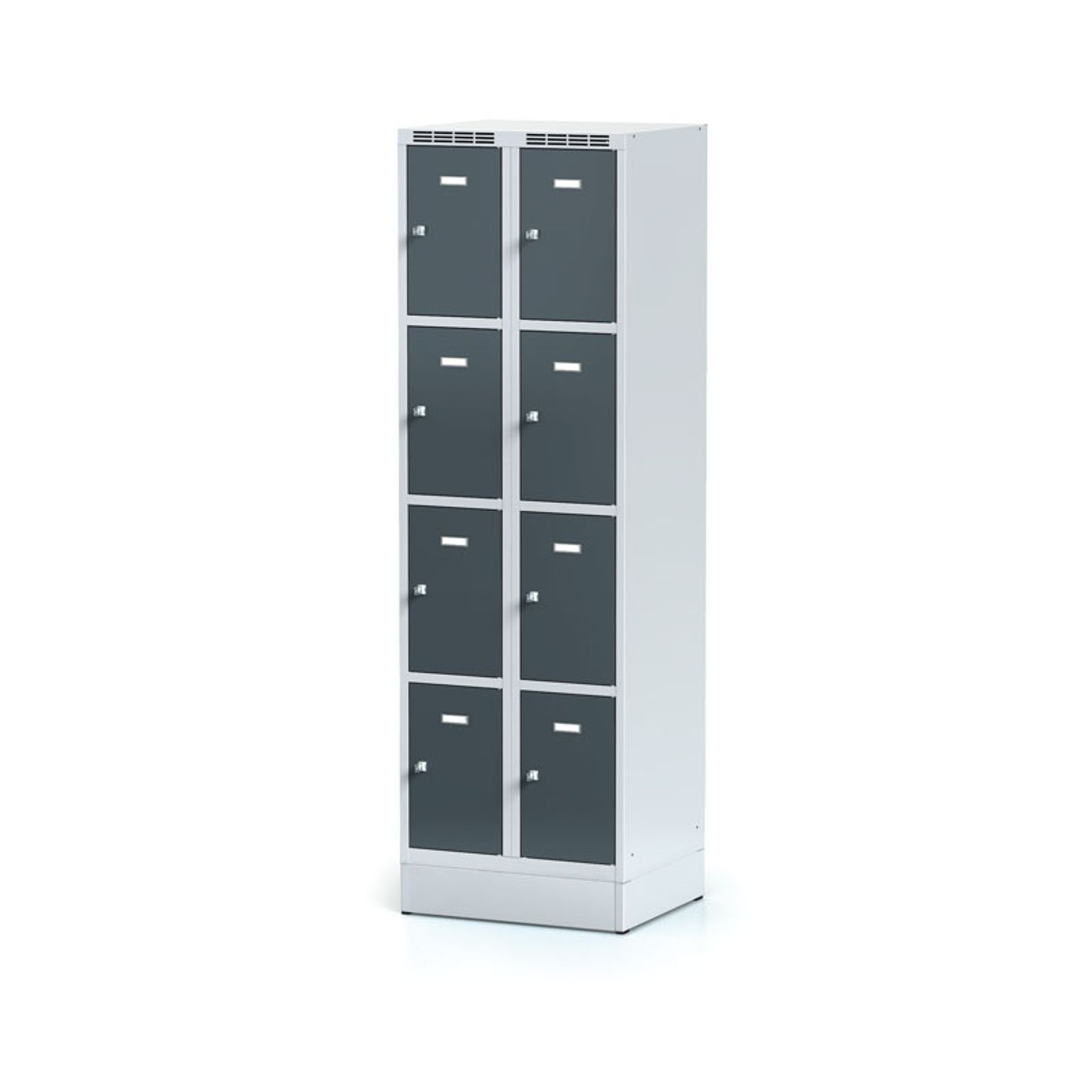 Skříňku s šířkou 300 mm tvoří 8 uzamykatelných boxů. Každý box poskytuje dostatek místa pro uložení osobních věcí, batohů či tašek. Toto úsporné a přitom bezpečné, uzamykatelné řešení je ideální všude tam, kde je potřeba šetřit místem a zároveň není nutné zavěšovat delší oděvy.