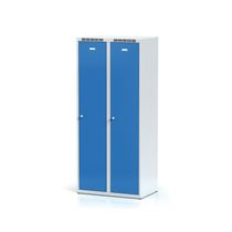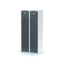 Díky vnitřní mezistěně nemusíte mít strach, že by Vám civilní oblečení například načichlo nebo se ušpinilo. Šatní skříňky jsou vybaveny buď cylindrickým nebo otočným zámkem. Včetně barvy si můžete navíc zvolit, jestli chcete, aby byla Vaše skříňka bez podnože, na soklu nebo na nožkách.