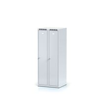 Šatní skříňky jsou ideálním pomocníkem pro úschovu osobních věcí a oblečení v každé šatně. Ať už se jedná o školu, provoz, kancelář, veřejné bazény nebo třeba veřejnou posilovnu. Díky širokému výběru barev a provedení šatní skříňky zapadnou naprosto kamkoliv. Bezpečí věcí a oblečení Vašich zákazníků, zaměstnanců nebo návštěv je navíc zajištěno díky uzamykání, které je součástí každé šatní skříně v naší nabídce.