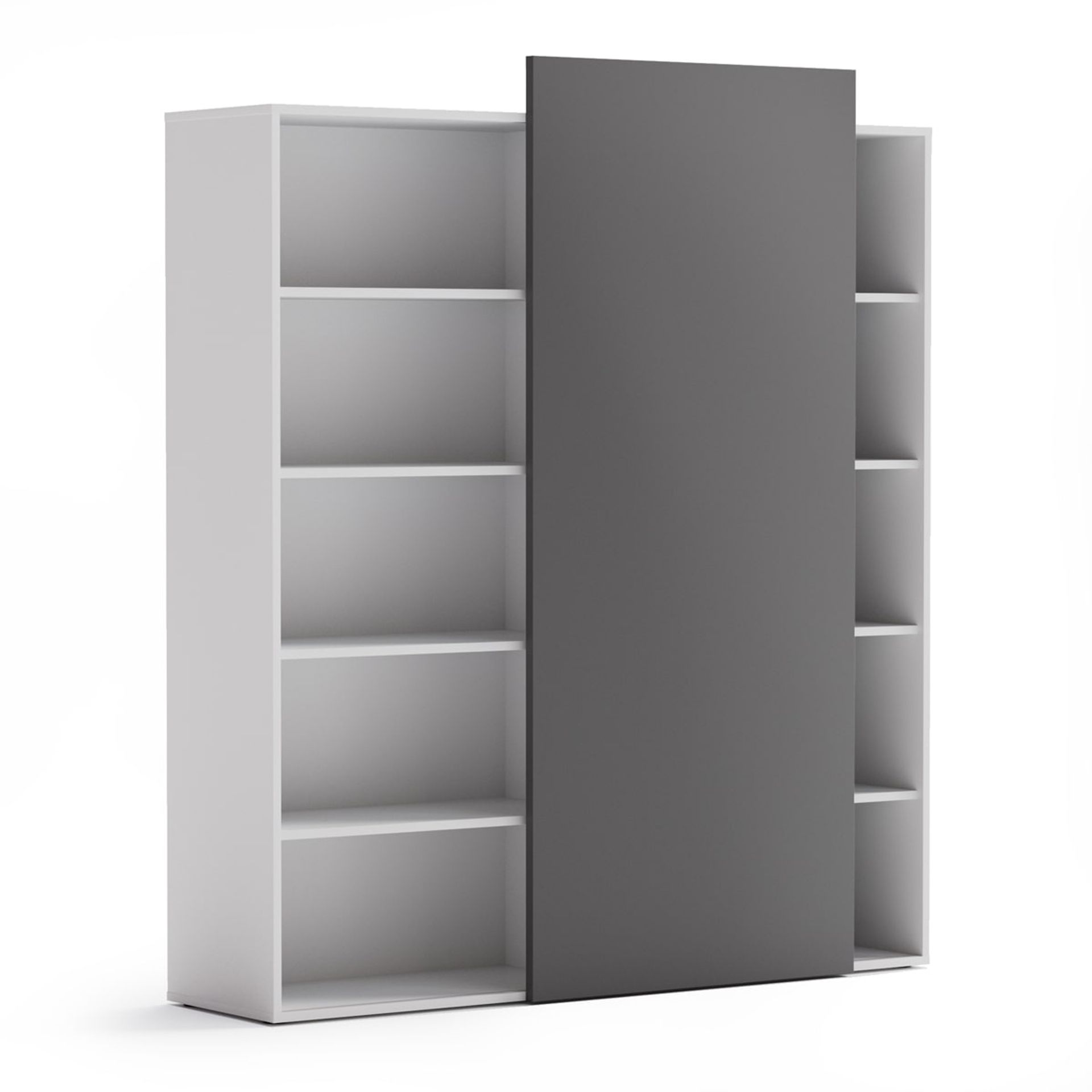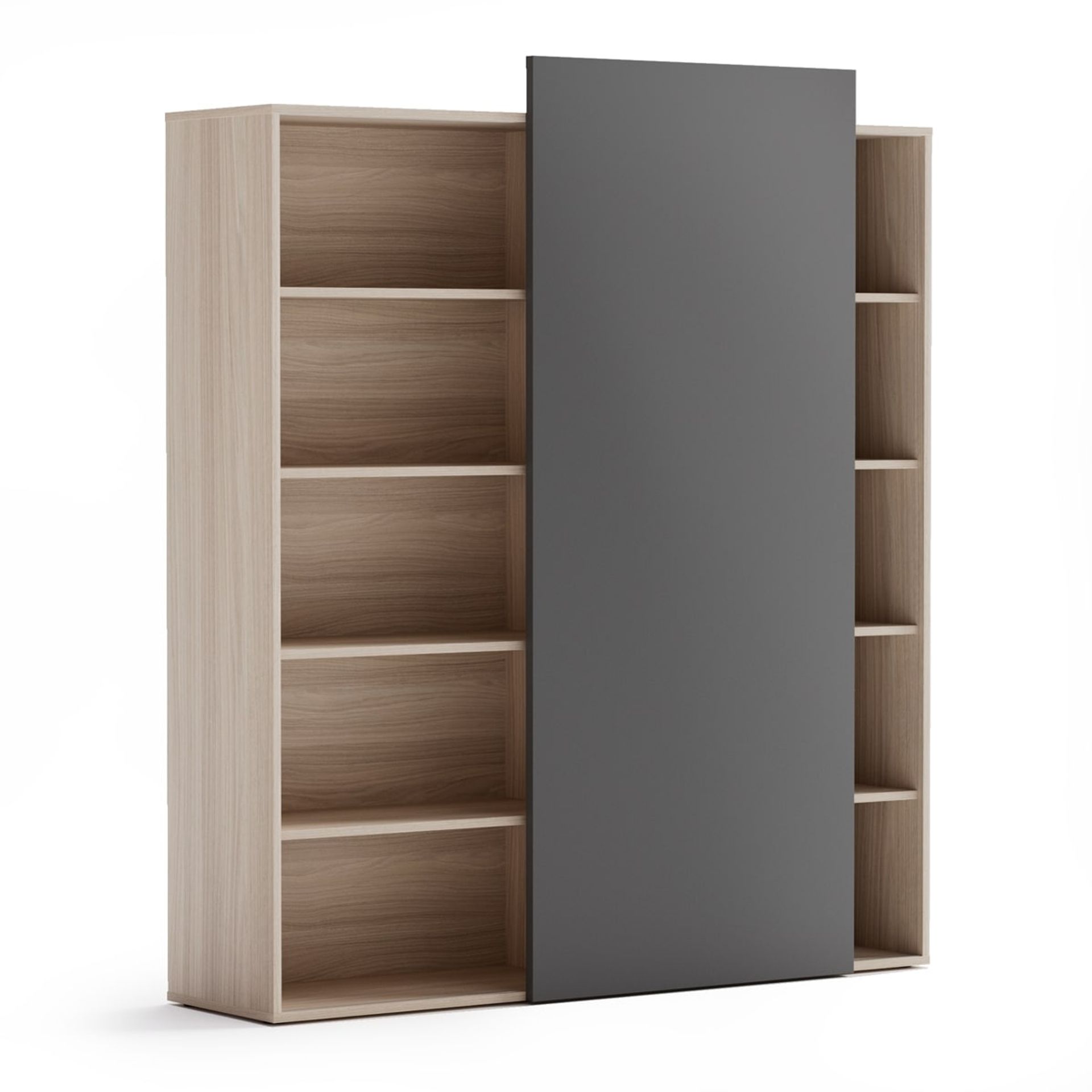 Velmi prostorná skříň BLOCK o šířce 1600 mm a výšce 1748 mm disponuje praktickým a zároveň elegantním pojízdným panelem o výšce 1847, který zajistí, aby byly odhaleny jen ty části, které potřebujete. Pojízdný systém je zafrézovaný do korpusu, a proto působí nenápadně. Systém splňuje veškeré funkční a bezpečnostní požadavky. Rektifikační kluzáky s výškou 7 mm k vyrovnání nerovnosti podlahy do 10 mm. Nábytek BLOCK je vyroben z laminované dřevotřísky o síle 18 mm.