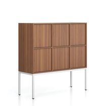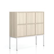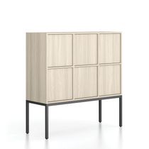Skříně a knihovny FRAME jsou vyrobeny z kvalitní laminované dřevotřísky o síle 18 mm a olepeny 1 mm ABS hranou. Vybrané skříně a knihovny naleznete také ve variantách s bílou a černou kovovou podnoží.