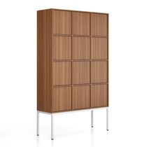 Skříně a knihovny FRAME jsou vyrobeny z kvalitní laminované dřevotřísky o síle 18 mm a olepeny 1 mm ABS hranou. Vybrané skříně a knihovny naleznete také ve variantách s bílou a černou kovovou podnoží.