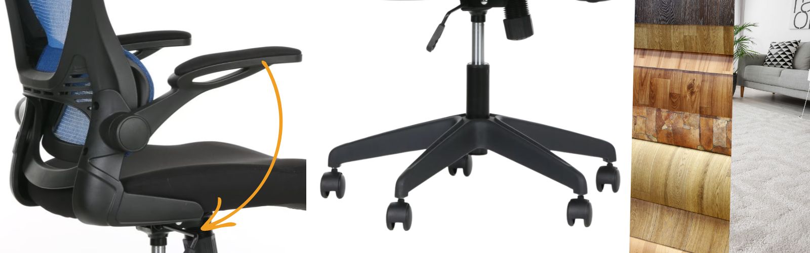 Židle stojí na plastovém kříži s nosností až 150 kg, což zaručuje vysokou stabilitu a odolnost. Kolečka jsou vhodná pro měkké podlahy, jako jsou koberce či linoleum, a umožňují plynulý pohyb po kanceláři.