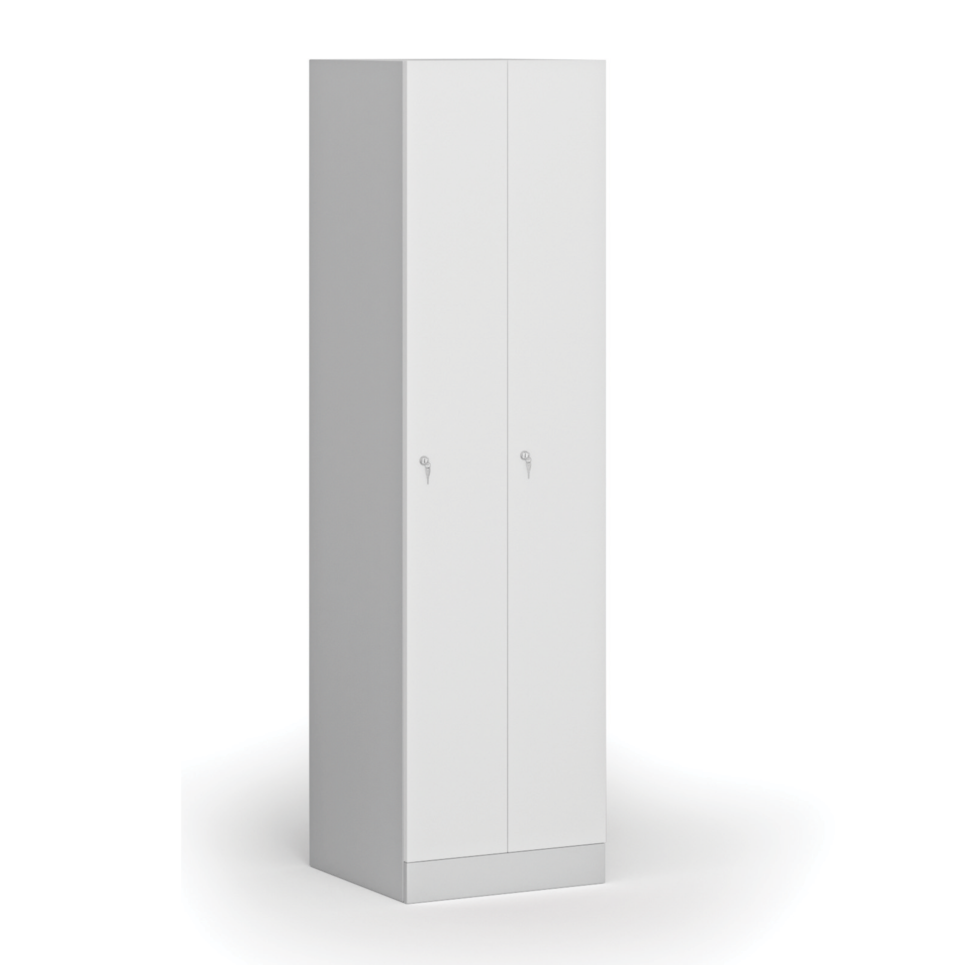 /Šatny a sociální zařízení/Šatní skříňky/Šatní skříňky zúžené/Zúžená kovová šatní skříňka, 2 oddíly, 1850 x 500 x 500 mm, cylindrický zámek, laminované dveře, ořech